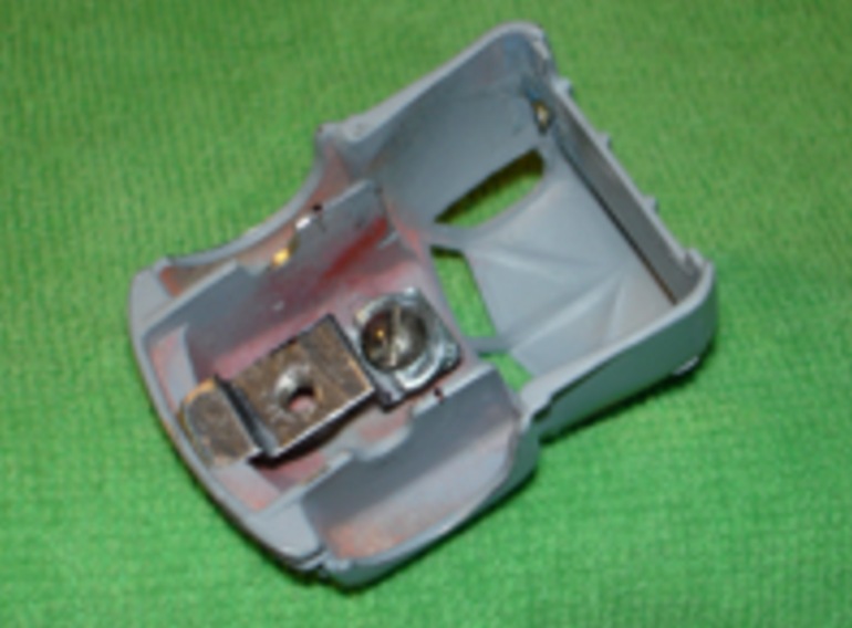 An adaptor had to be formed to get the cab to fit the Hartoy frame. Randy built this from a tin can top, bending it to fit.