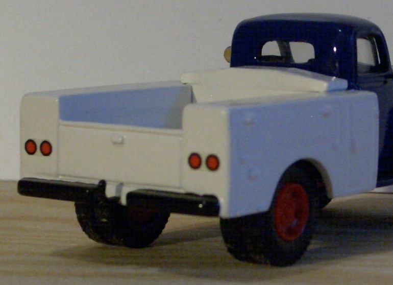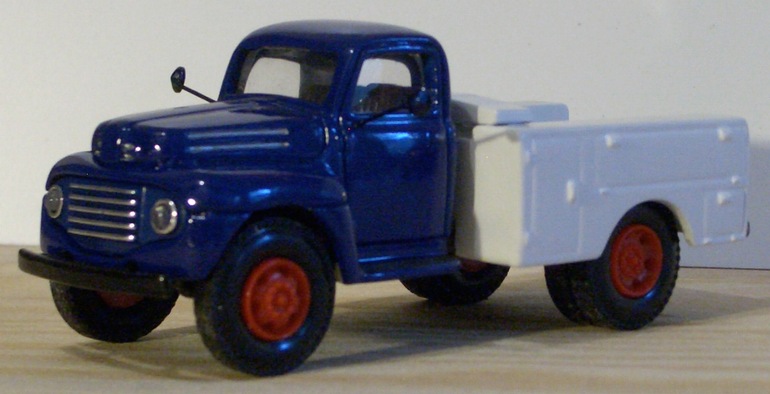 The next photo shows another Hartoy 1948 Ford F-5 truck which was modified by adding mirrors, and the addition of an Ertl utility body, but there is more.