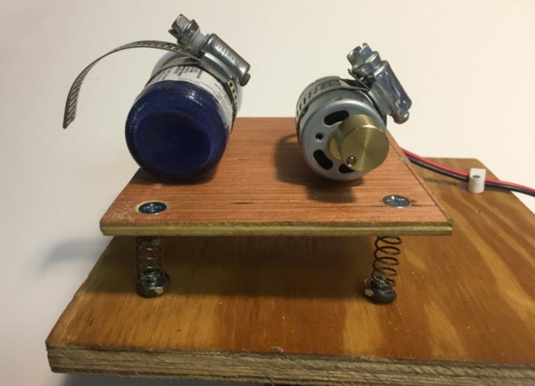 The unit consists of a surface (table) to which a de-stabilized/vibrating motor and the paint bottle are mounted. The springs keep this table attached to a base, but yet allow it to vibrate.