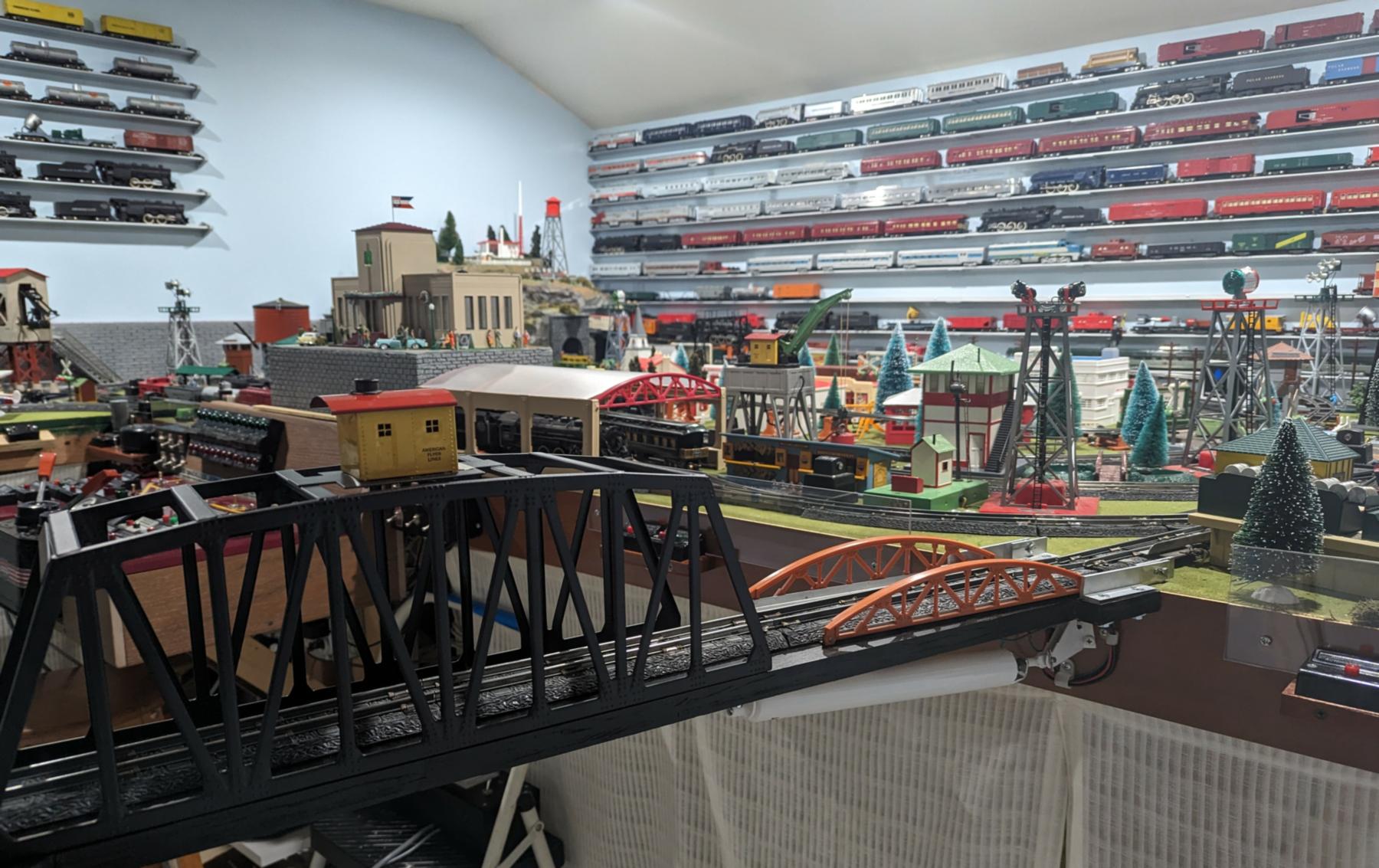 Tim designed his layout so as to bring back the memory of seeing American Flyer displays in the 1950s in department and hardware stores' windows.