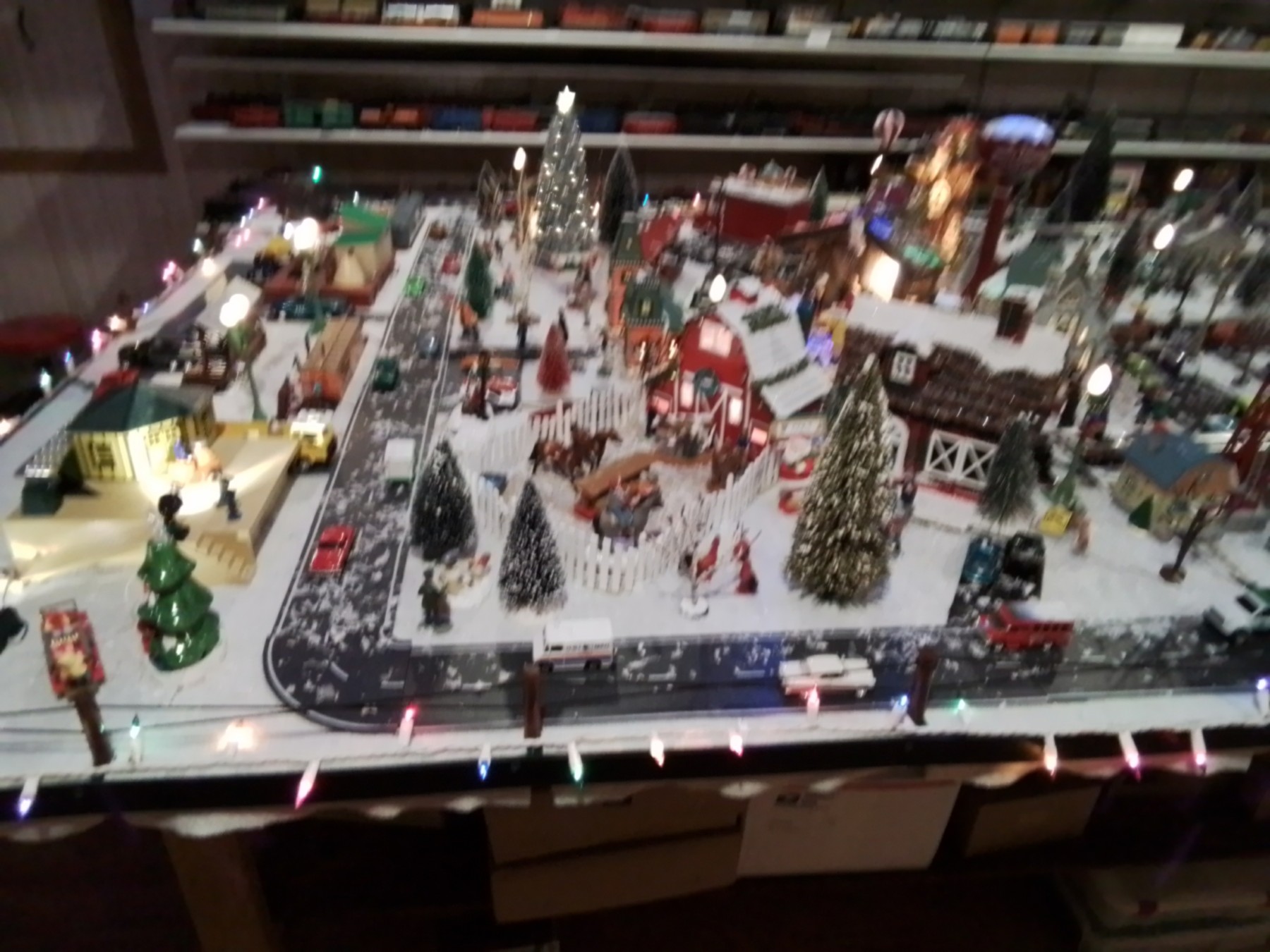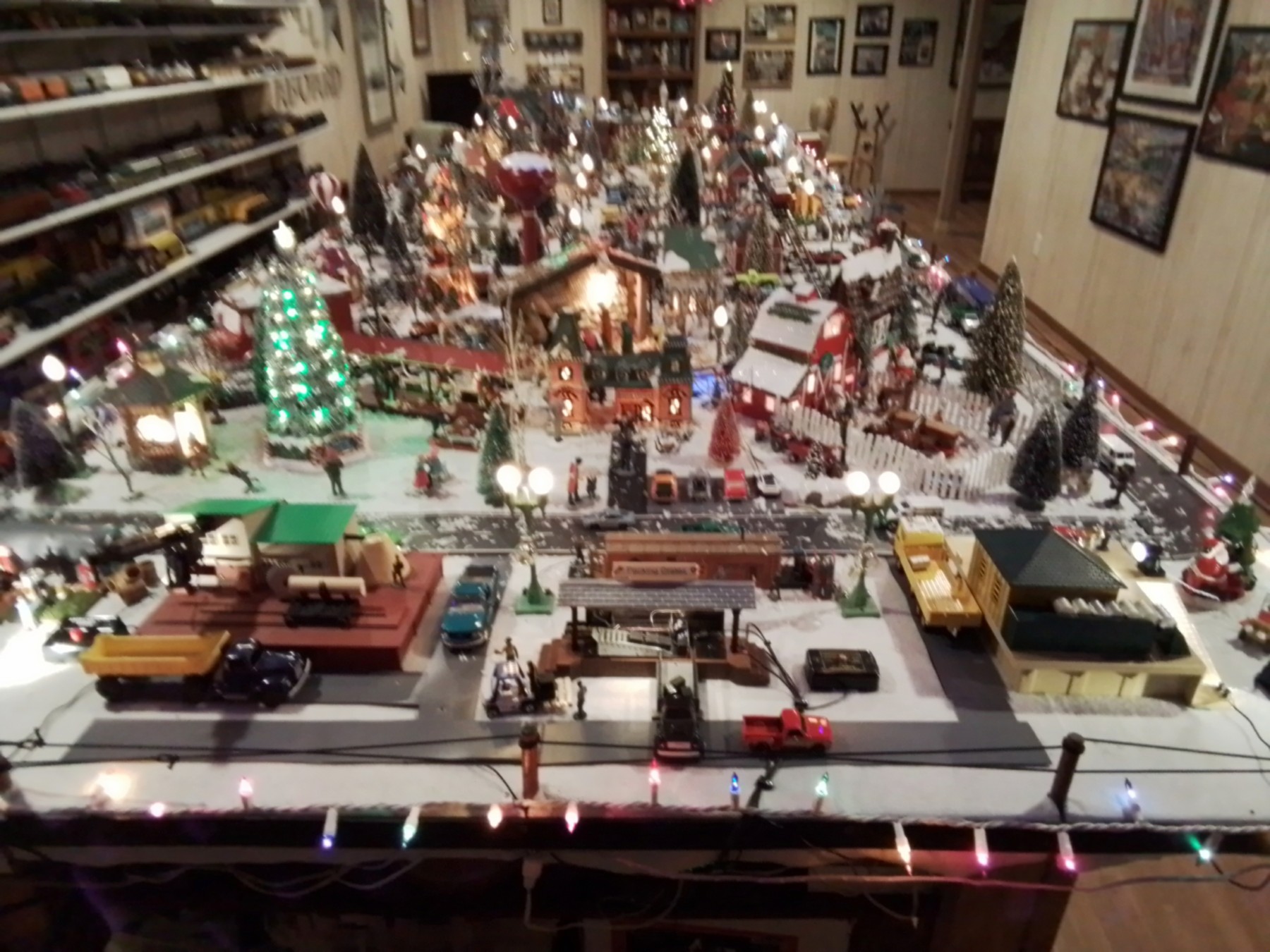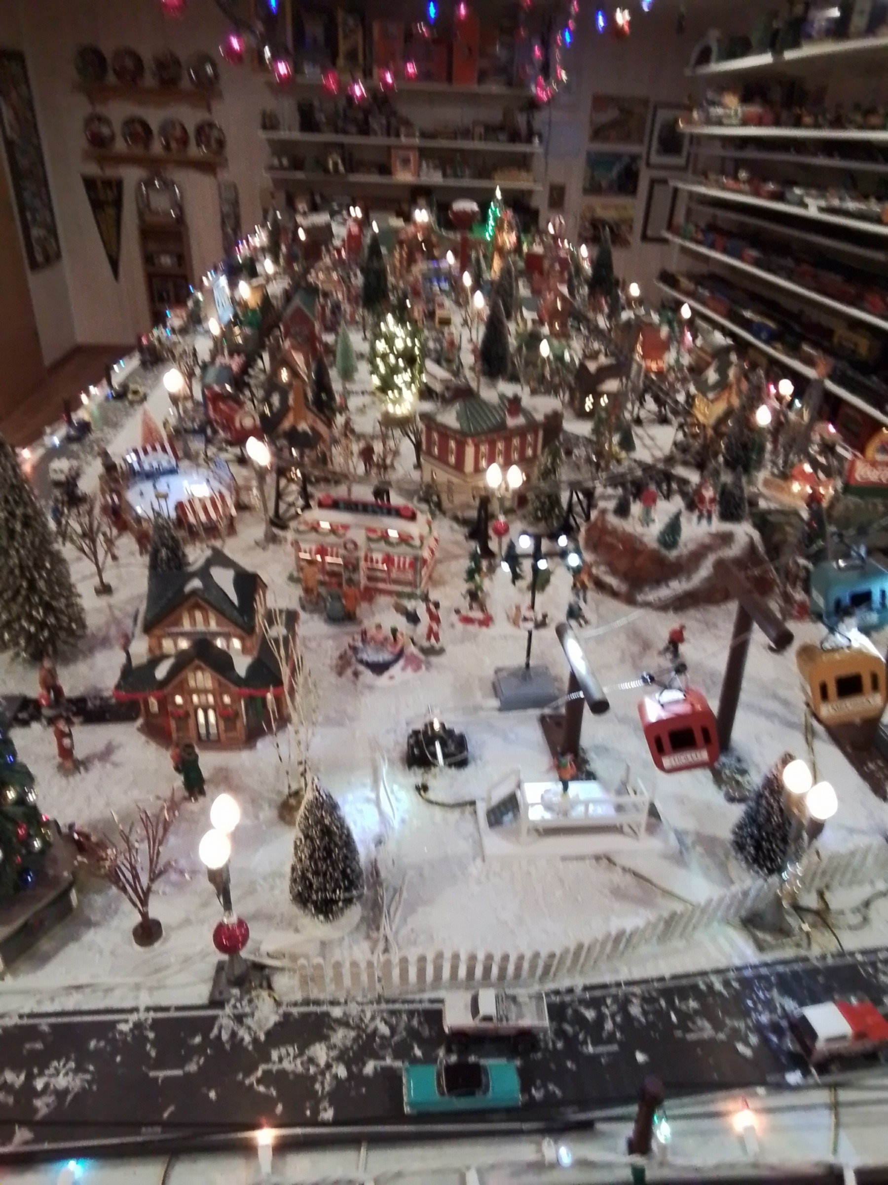 Jim does three themed layouts each year, one for summer, one for Halloween, and one for Christmas. While the photos are a bit blurry, they still give a good idea of how he set-up his layout. This was the version for the 2025 Christmas season.
