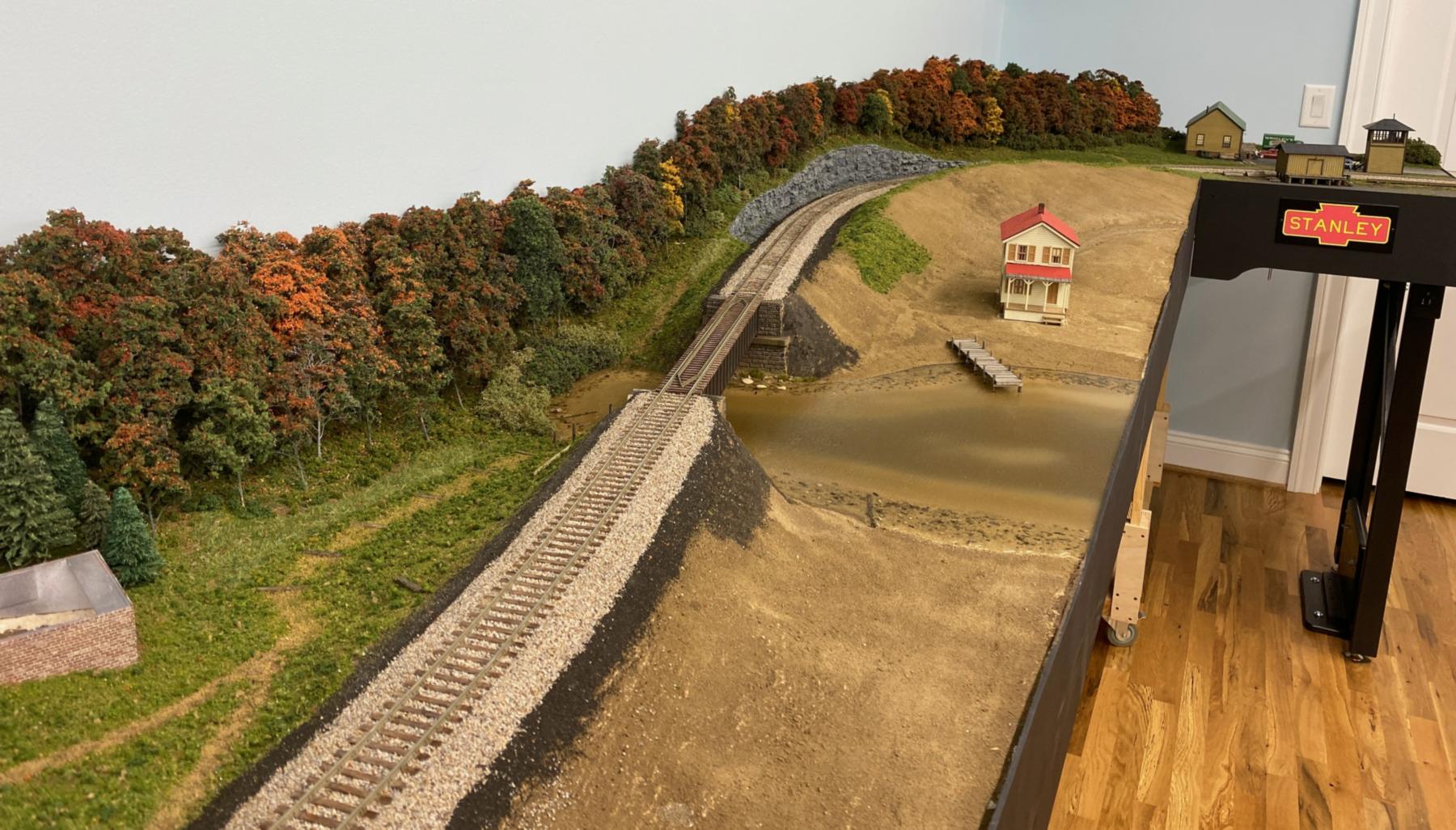 benchwork: 100%; track: 90%; scenery: 50%