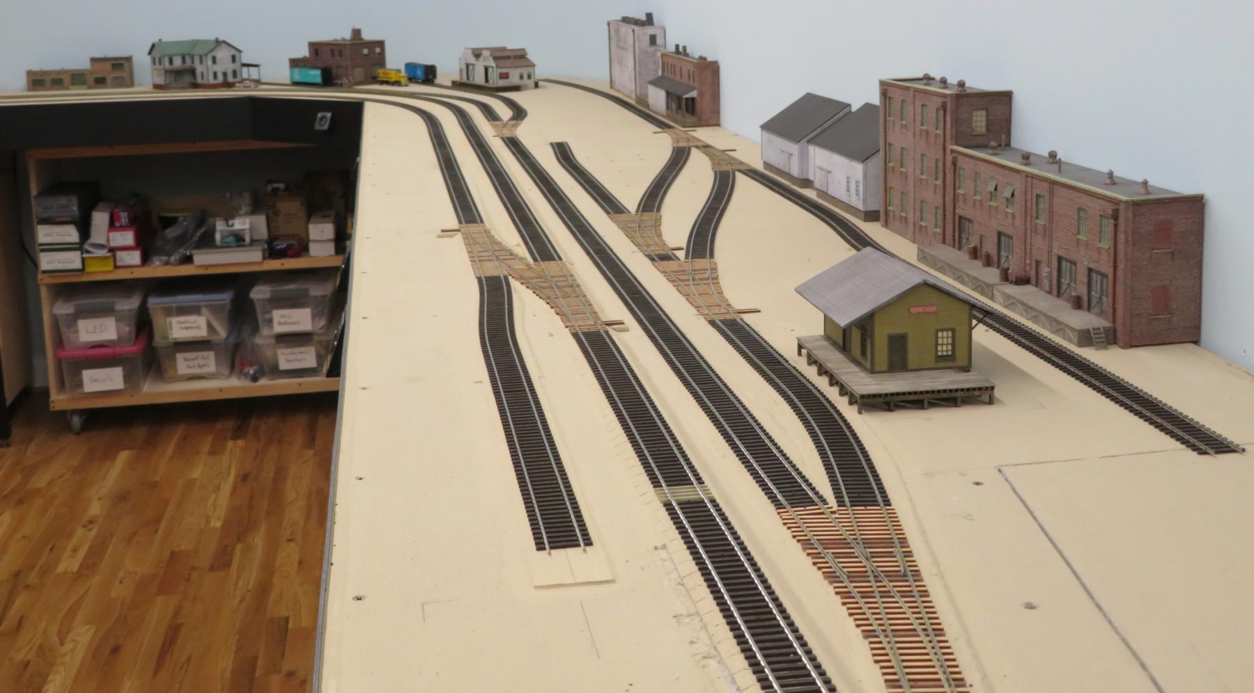 A glimpse of the Shinohara flex track and the Fast Tracks jigs-built turnouts throughout the layout.