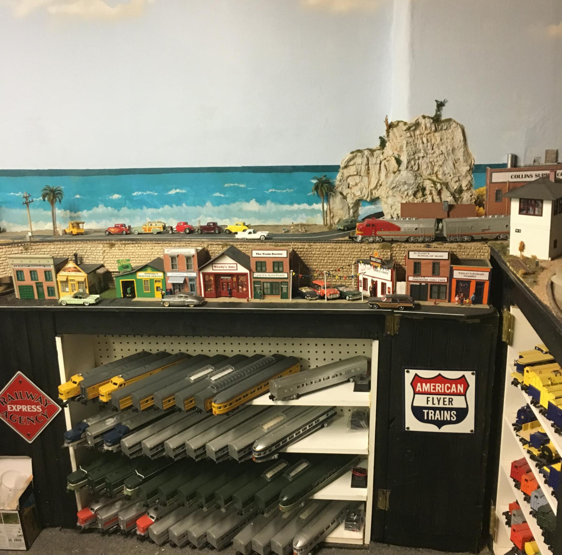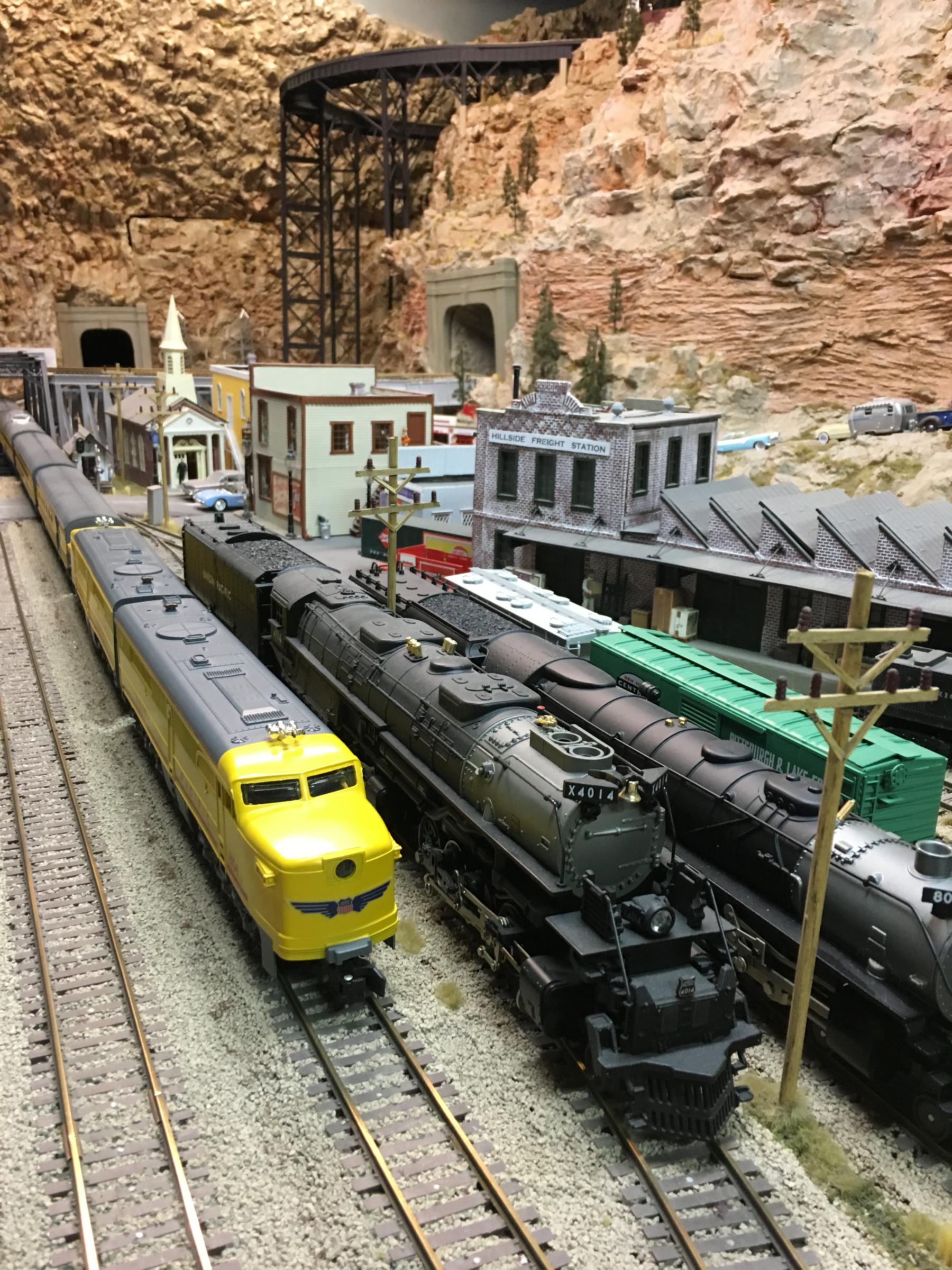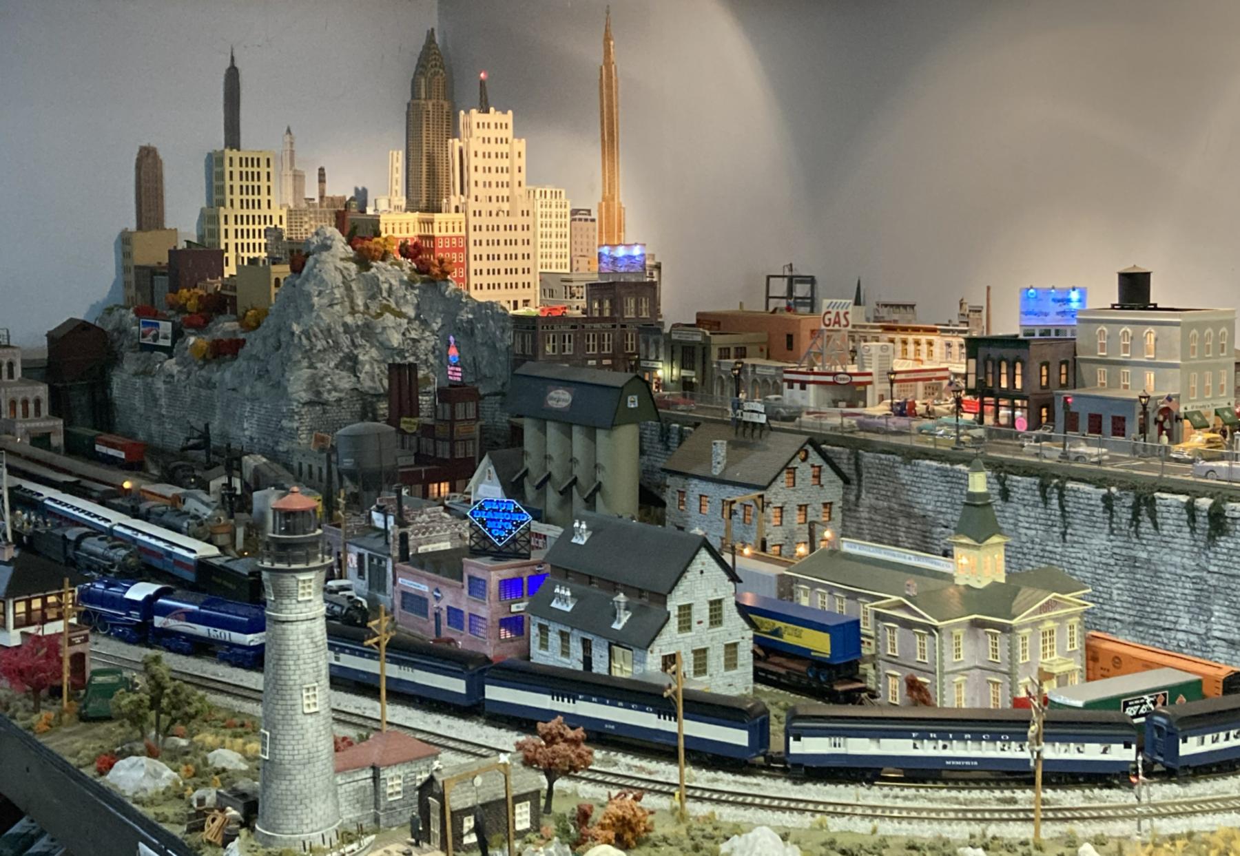 Portions of this fantastic layout include floor-to-ceiling scenery! The layout has scenes that can be found in New England, Altoona Horseshoe Curve, Colorado, Utah, the Grand Canyon, and the Pacific coast.