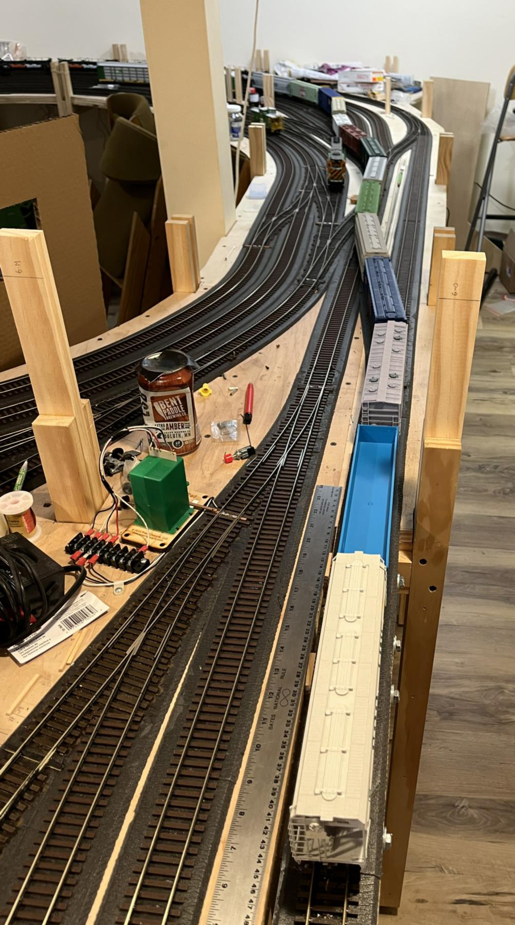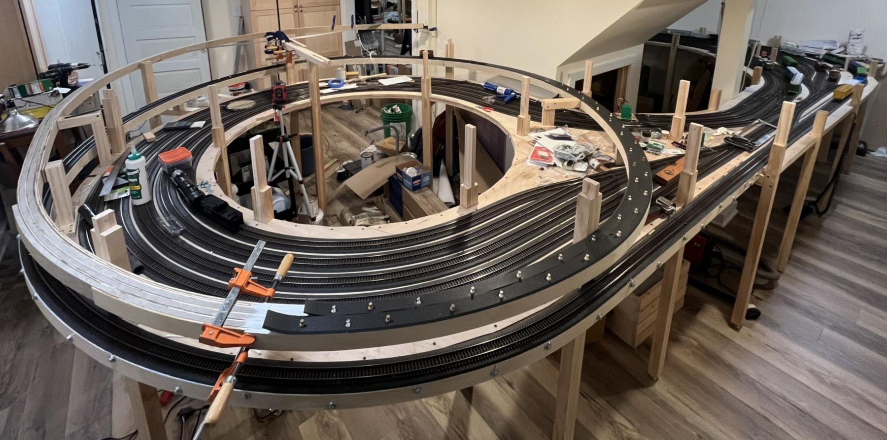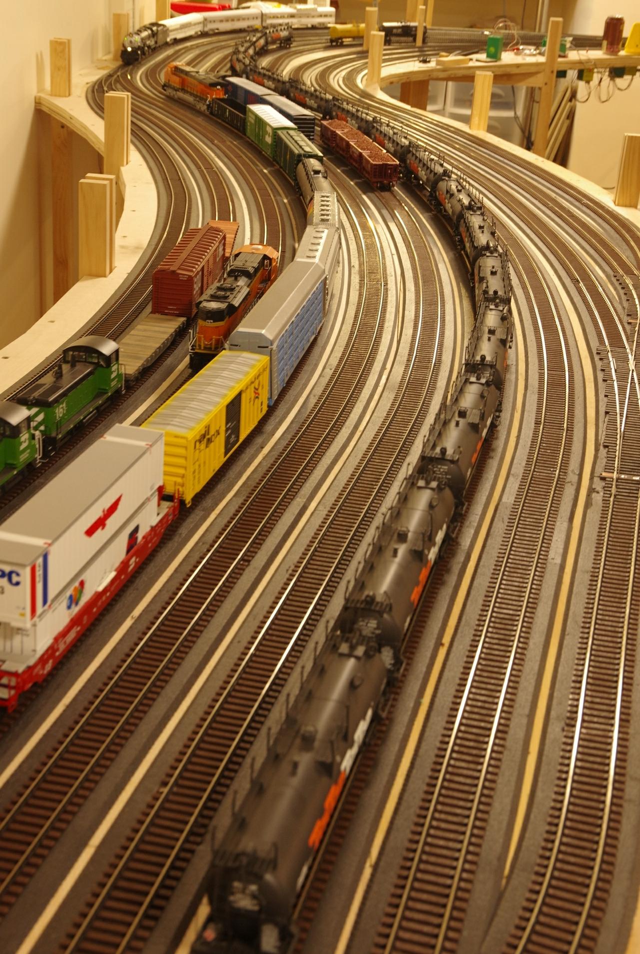 The lower level is primarily intended for staging, and the upper level is the "layout-proper". Ben enjoys just watching long trains running. Ben is still working on the layout, so that is a great opportunity to see how he is building it.